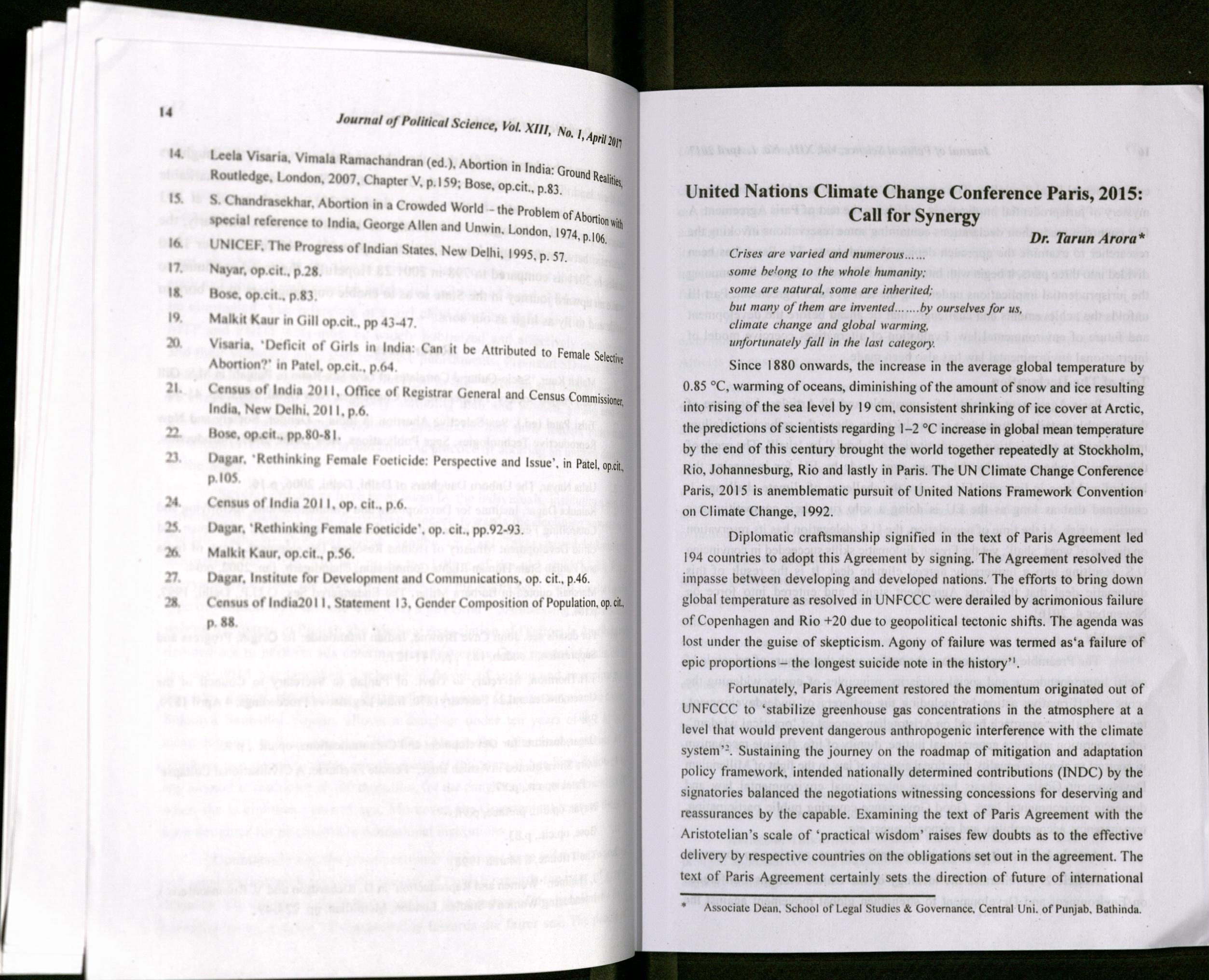 Arora, Tarun(2017)United Nations Climate Change Conference Paris, 2015: Call of Synergy. Journal of Political Science, XIII(1), 15-22
